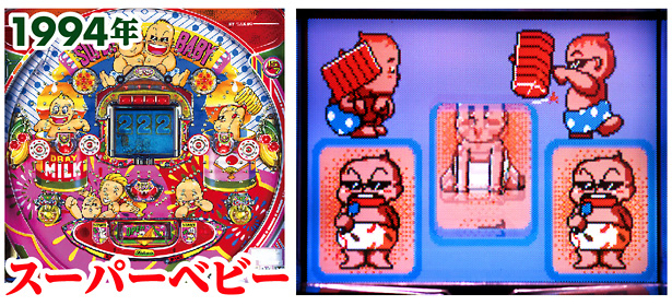 高尾初の液晶デジパチで、悪い赤ちゃんが大活躍! 当時としてはよくデキた演出で「これは売れるかも」と思ったけど、導入ホールは意外と少なかったですね…。