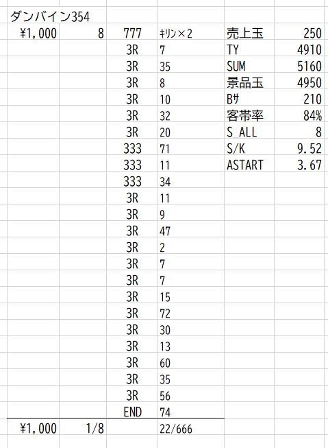 1/32.1の74回転ってのは続くと思うし、好きな人はたまらんのやろうけどアタイには無理。初っ端777から始まったけど、これ600回転で大当たりが3回までの勝負ってのをやってみたかったですな。その時のRUSH突入率が89%って書いてあったから其れなりに突入するとは思うけど。
