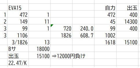 にしてもこの店おかしい。エヴァアスのポケットに関する釘を全台プラス調整にするなんて有り得ない。否、元ゲージに対してのプラスではないけど、一旦締めた釘調整をある時期になって元に戻すなんてことがあるのかしら?何故この時期にエヴァのポケットを還元するのかさっぱり分からんけど、この店はかなりの優良店。素晴らしいということですね。