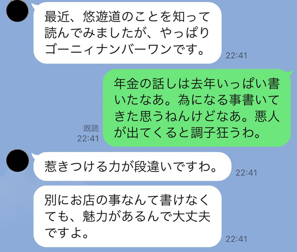 ラインのやり取りの中で悠遊道って言葉が出てきたと思うけど、このブログに関しては安田さんが開設した当時から私は読んでます。コロナが流行り始めた頃だから2020年かもしかしたらその前年からのお付き合いだと思うけど何でこれを知ったかというとレイリーさんからの情報でしたね。彼と古い仲のセミプロ夫婦がある日突然レイリーさんに晩御飯を御馳走するという話になって、彼がどしたんって聞いたら、「悠遊道でパチンコライターになったんですね。おめでとう、今日はお祝いだから私達に驕らせて」と言われて泣きそうになったって話を聞いたから。このセミプロ夫婦はニューギンの直営店でよくお会いしてた方。昔は東海市に住んでたんでパチンコ三洋行ってた頃にも良く会ってましたね。そんなわけでそのブログはそんなに有名なんか?って気になったものですから読み始めたという次第。レイリーさんはその後うんともすんとも言わんくなって幽霊ライターになってるけど、当時はポチ、安プロ、じゃじゃという黄金の3本柱が出来上がっていたので電車ん中でひたすら読んでましたね。その後ビレッジを止めたきーうぃさんが佐々木さんに誘われて悠遊道ライターデビューしたけど、彼は目が見えんと言い出して没。だから私個人としては安プロ、じゃじゃさんの記事が中心。それ以外の方も一応は目を通したけど私の感性には合わず無理。結局南極それほどまでに有名な記事であっても、私の記事よりかはつまらんなあという感想。