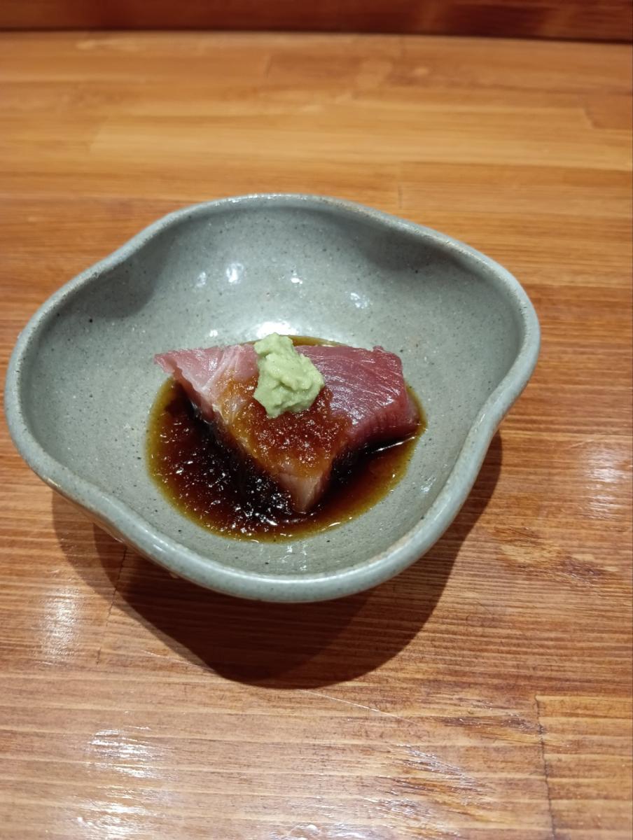 最初に出たのがヨコワのお造りを玉ねぎ醤油で。