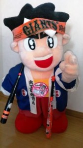 大きさは50センチ位。ジャイアンツの鉢巻きと応援バットはともぞうの趣味です。