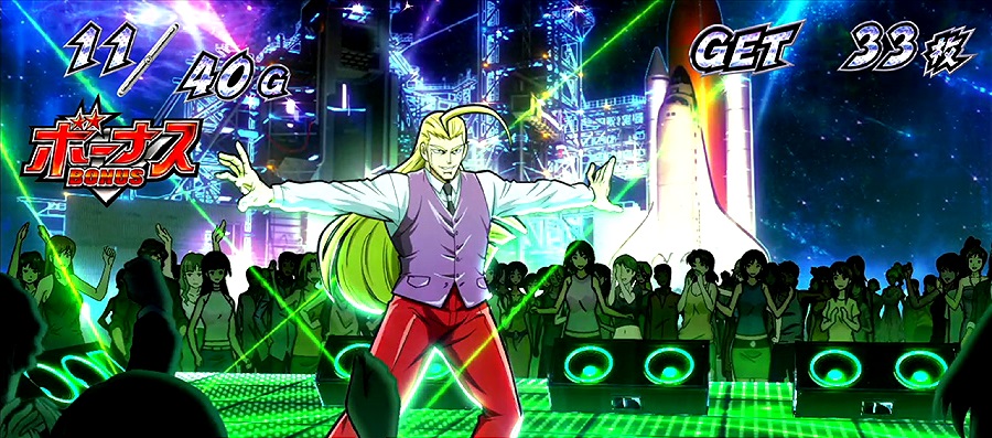 BONUS中はステージにも注目。基本は青背景の「ラスベガスステージ」となりますが、BONUS開始時に緑背景の「シャトルステージ」からスタートの場合は60G以上の継続が確定します。また、BONUS継続時にラスベガスステージからシャトルステージへ昇格ならもう1回以上の継続が確定します。