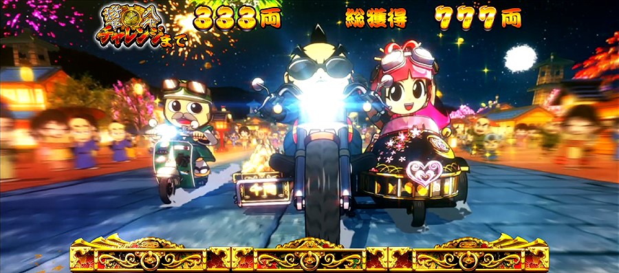 連続演出は5種類あり、悪者成敗・飲み比べ≪追っかけ≪剣豪対決≪最終決戦の順に期待度アップ。最終決戦ならATの期待も高まります。