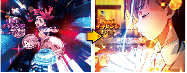 2回のボタンチャレンジを突破できれば成功で、各チャレンジの成功率はどちらも約50%。1stチャレンジの成功率が「約70%」だとチャンスアップだ。Finalチャレンジのボタンがいつもと違えば!?