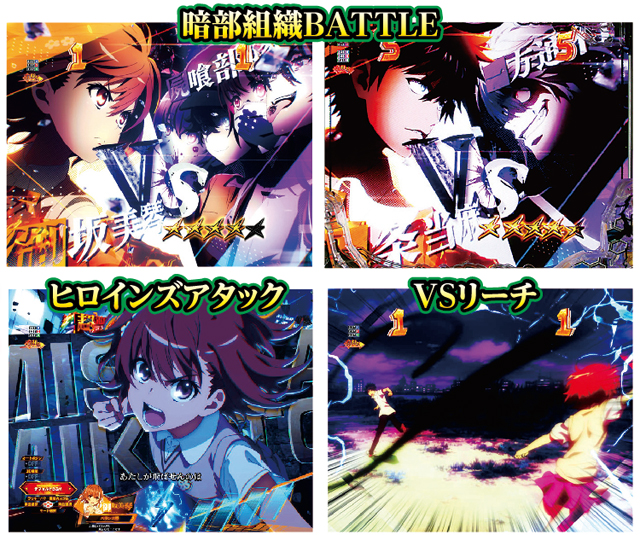 暗部組織BATTLEは図柄揃いに絡む割合の高い演出で、バトルの組み合わせで信頼度が変化。スプラッシュミッションとVSリーチは発展した時点で大チャンスだ。