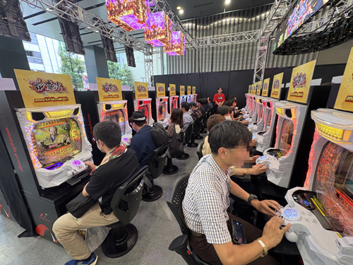 試打コーナーには、11月4日からホール導入が開始される『e花の慶次~黄金の一撃』が設置。一足先に新機種を体験できるとあって、多くのファンが列を作った。