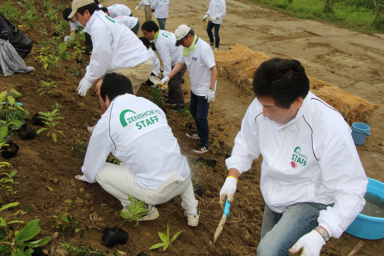 全商協の参加は、昨年9月に宮城県岩沼市で行われた「千年希望の丘」植樹祭に続き、2度目。
