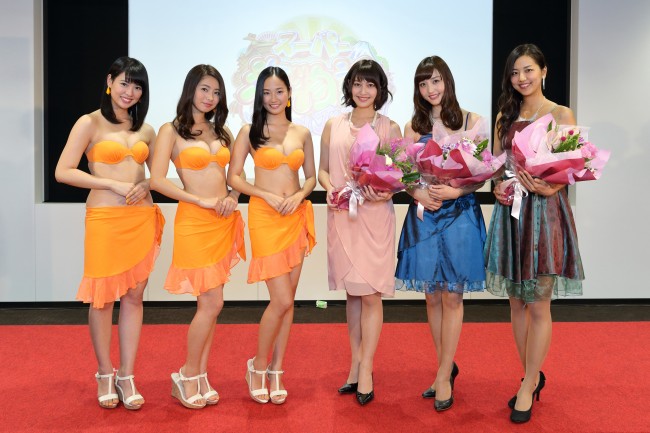 続いて、7代目ミスマリンちゃんが登場。就任したのは栗咲寛子(くりさきひろこ)さん、茜音(あかね)さん、高嶋香帆(たかしまかほ)さんの3名。本機の撮影秘話や苦労話などを披露した。