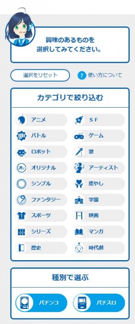 気になるコンテンツや、スペックを選択することでオススメのSANKYOの台を提示してくれるというサービスです。