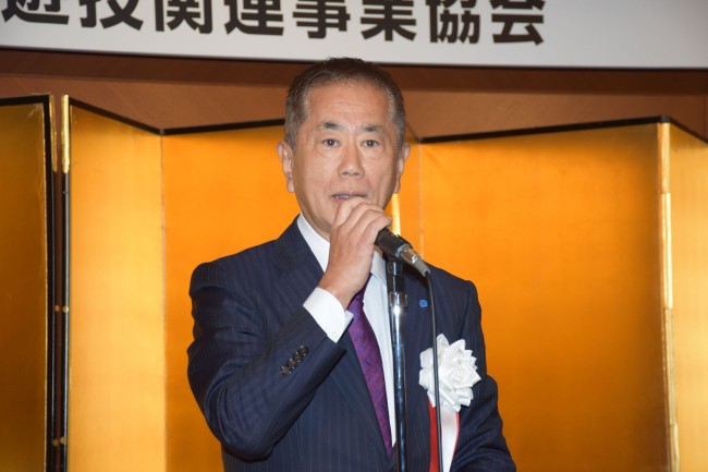 新年祝賀会で庄司会長は「日遊協は、来年30周年を迎える。レジャー白書的な、産業としての数値をつまびらかにしていくものを作成するほか、2001年にあった『遊技産業の在り方懇談会』のようなものを、この時代に合わせて作り、この業のあり方について、また機械のあり方について、団体間で話し合っていきたいと考えている」とあいさつした。