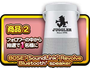 ※ギフトコードの配信を賞品発送とさせていただきます。さらに、フォロワーの中から抽選で1名にオリジナルBOSE® SoundLink® Revolve+ Bluetooth® speakerをプレゼント。