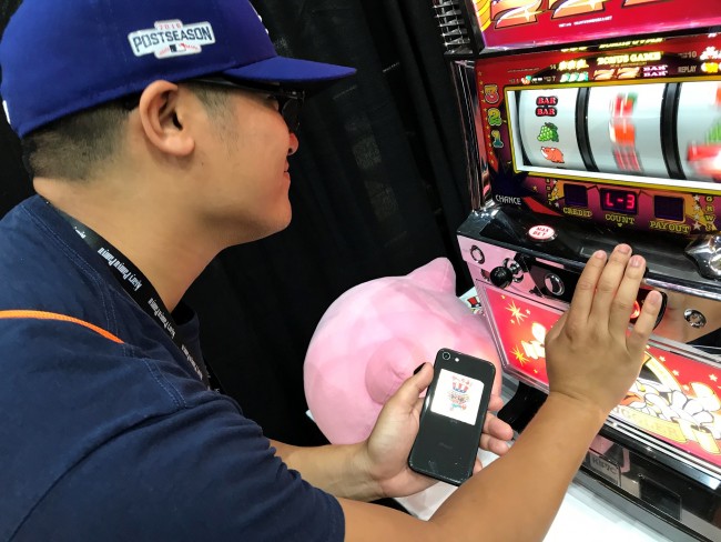 パチンコ機3台とパチスロ機4台が設置された「パチンコ・パチスロブース」に訪れたおよそ6,500名の外国人がパチンコ・パチスロの楽しさを体感した。