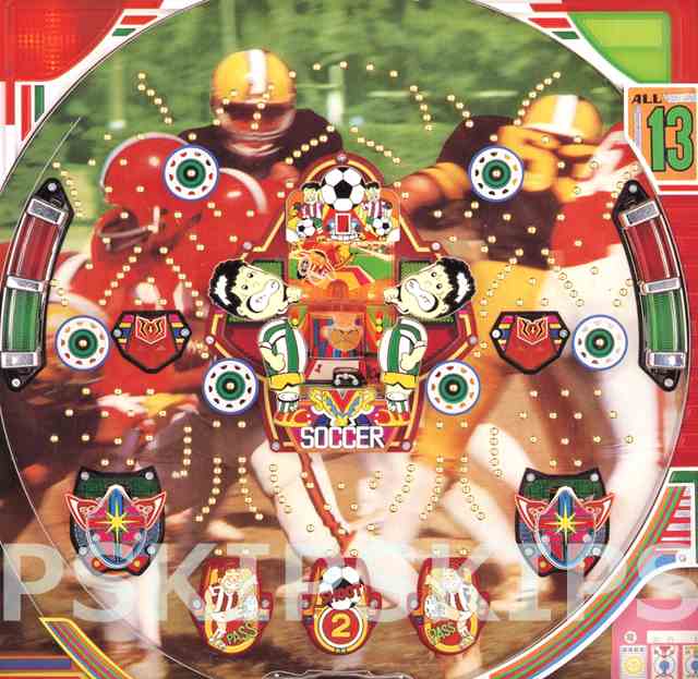 賞球数オール13の羽根モノ。モチーフになっているのはサッカーで、羽根開閉は選手がヘディングをするイメージで、役物内にはキーパーやスイーパーもいる。天釘は5本構成で湾曲している。