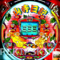 山寺で繰り広げられるタヌキたちのパフォーマンスが楽しい時短デジパチ。大当たりになれば50回~220回の時短に突入する。トータル継続率は約41.4%。