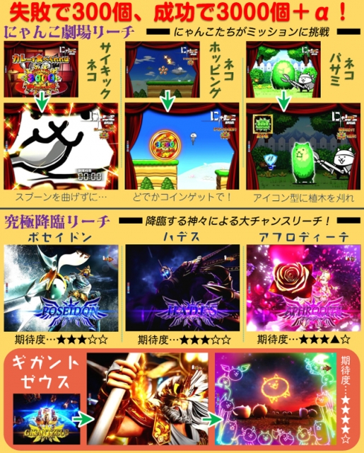 | ※降臨ガチャ成功時 10R(実質10R)通常(実質3000個獲得後、時短なし)…約50% 10R(実質10R)通常(実質3000個獲得後、時短突入)…約50% |