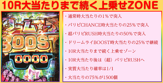 右打ち時実質確率(ドリームライBOOST) | 1/1 |