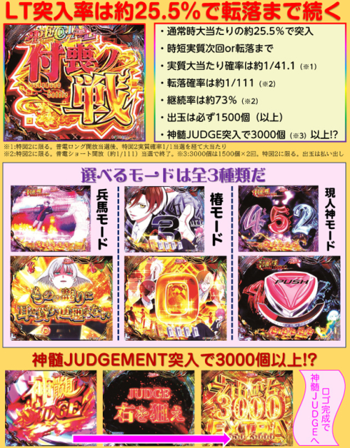 10R(実質10R)通常(LT継続)…約50% 10R(実質10R)通常(実質3000個獲得後、LT継続)…約25% 10R(実質10R)通常(実質6000個獲得後、LT継続)…約25% ※3000個は1500個×2回分、6000個は1500個×4回分 |