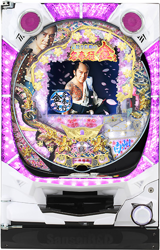 液晶上部に金さんロゴ、左右から出現する御用提灯の各役物を搭載。