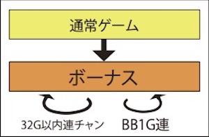ボーナス終了後は32Gまでが連チャンゾーン。