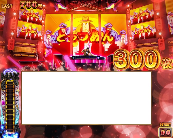 銭形BONUSは初回100枚、2回目以降は100~3000枚(平均払い出し300枚超)。