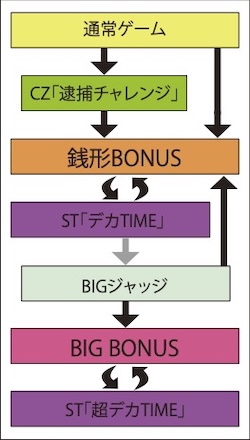 終了後はST「デカTIME」へ突入し、そこで成功なら再び銭形BONUSへ。