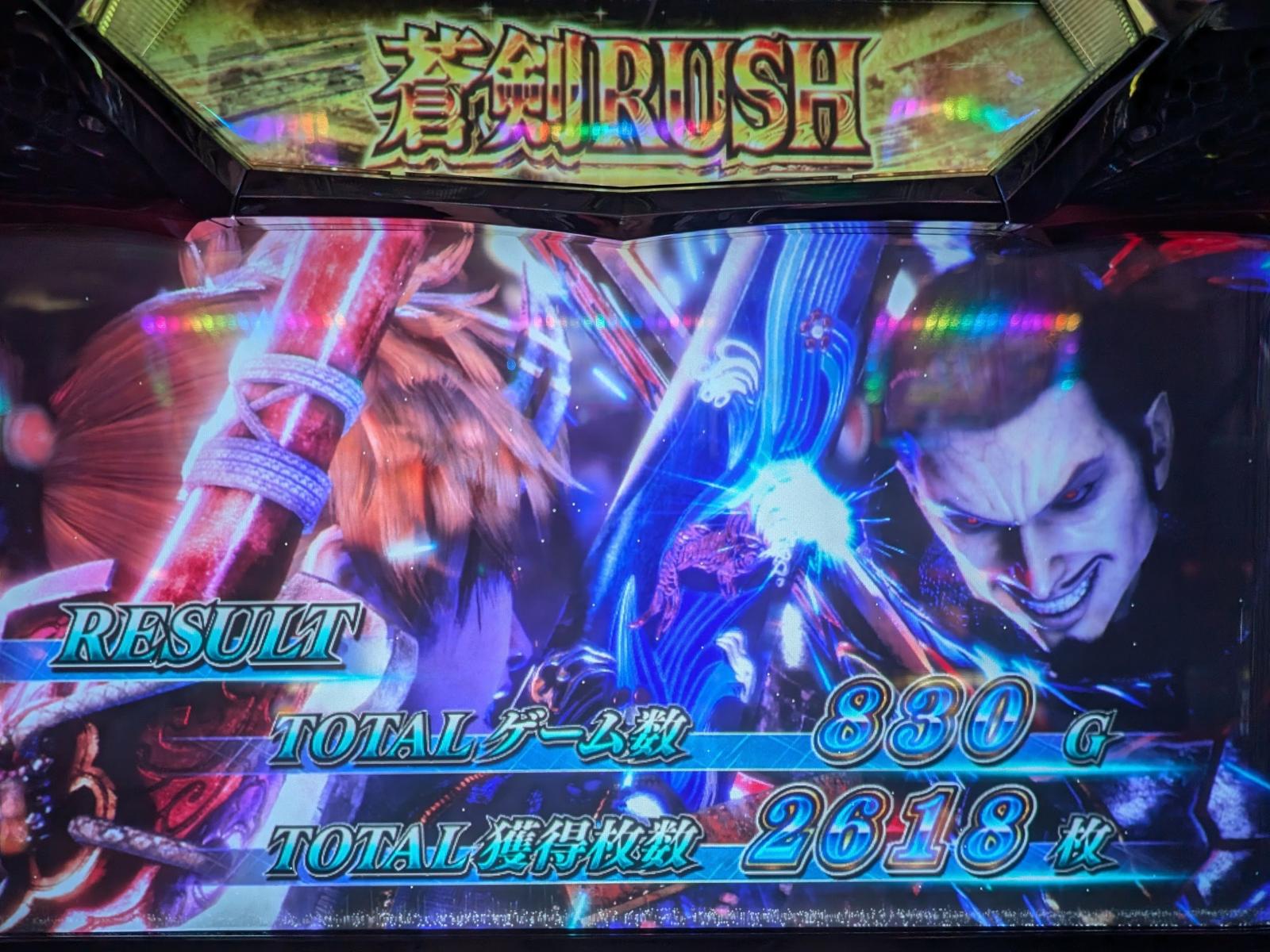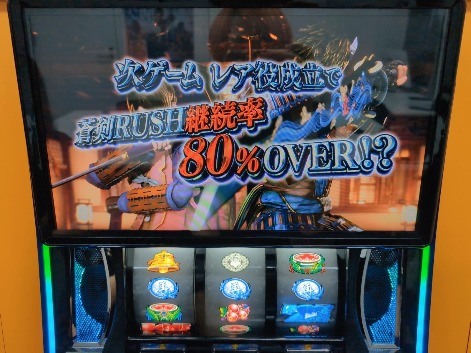 そして新鬼3には上位AT「真蒼剣RUSH」が搭載されていまして、純増枚数が約2.5枚から約5.5枚にアップ!