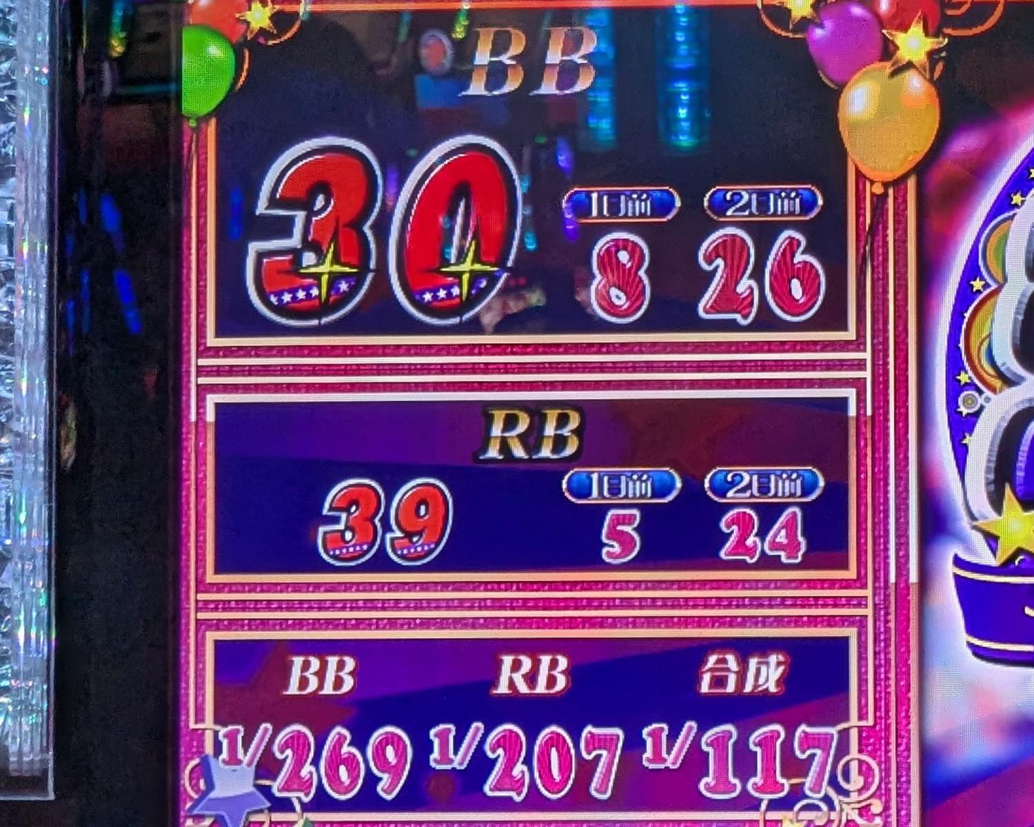 最終データは8097G・BIG30回・REG39回。合成1/117。
