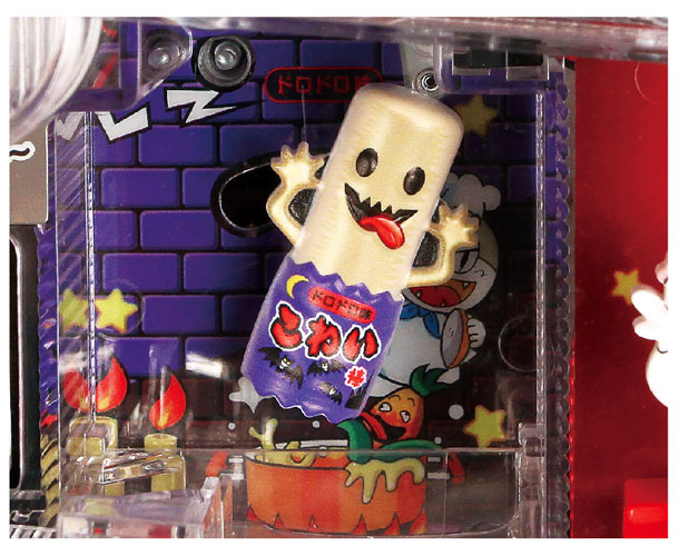 まずは『うまい棒』から。前々回のコラムで紹介した覚えがあるけど、実際に打つとやっぱり楽しいことこの上なし! 最下段の回転盤役モノの入賞率が3分の1以下(なぜか赤穴の手前か奥に玉が吸い込まれるのだ)なのが騙された&腹立たしいケド、それも含めて頭に血がのぼるというか、アツくなれるのなんのって。現在までに3万円分の貯玉を突っ込んで47回転させたものの当たりはナシ。次回予告も金保留も群予告もハズしてコンチクショーだケド、まだまだ打ちたくて仕方ない台ですね。