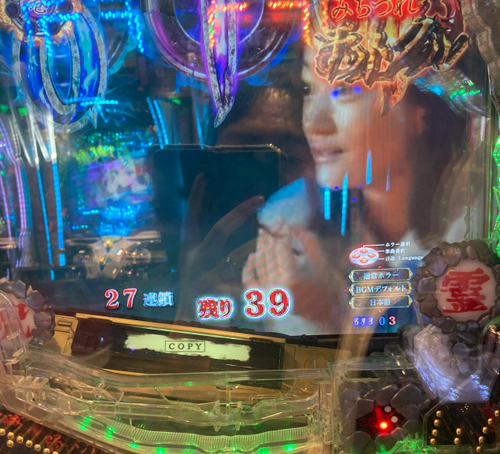 まぁそんな感じで新台の『沖海6』に関しては計7500個のマイナスだったのですが、久しぶりに宵越し台を打てた『Pリング 呪いの7日間2』(遊タイムまで残り190回転)のライトミドルが30連の爆発!