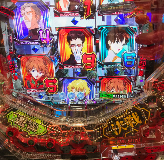 続いては遊タイムまで残り425回転の『新世紀エヴァンゲリオン決戦〜真紅〜』に着席。まぁ普段なら打たない回転数ですが、今日は旧イベント日でいつもより釘がアイているので打ちます。すると貯玉+持ち玉での2000個と追加投資9500円で、無事(?)遊タイムに突入。