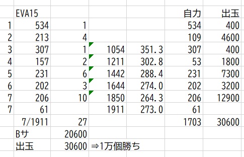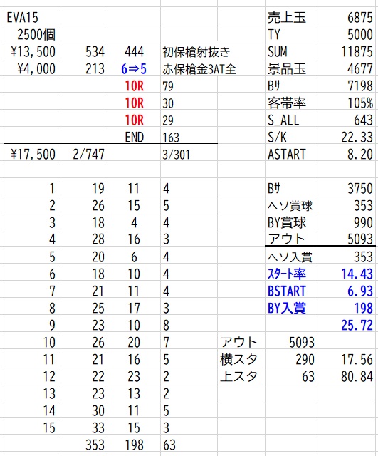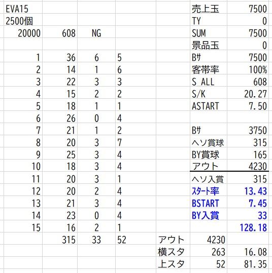 7月と9月同じ遊技台。明らかに変わった釘調整。エヴァアスのBY入賞率は元ゲージでは1/60と思っていたけれどそうではなかった。元ゲージに近いのが今日。1/25.75だ。恐らくは長らくエヴァアスを遊技してきたけれど、ここが1/25.72という数字は過去イチ番高い数字だろう。これほどまでに恵まれた遊技環境があるのだろうか?千円当たりの回転数は今日の方が圧倒的に高いけど、実際のスタート率は7月の方が高い。然し打ってて心地よいのは今日の方。素晴らしい。