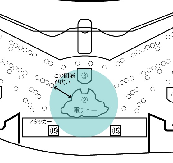 こういう事なんですね。この台の盤面を見た時に、一見して電チューの左右間隔がやばいなと思いました。これだけ間隔が広いと電チューが開いても拾わないだろう。
