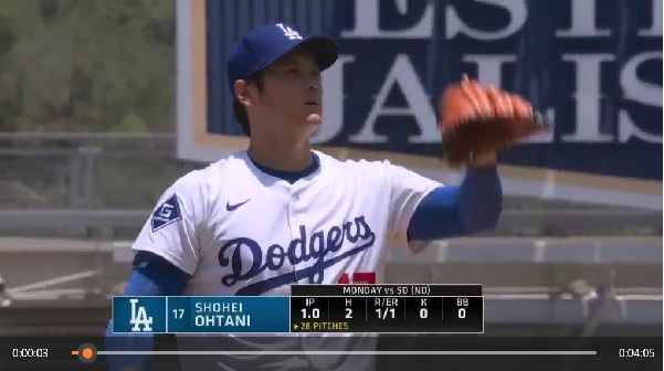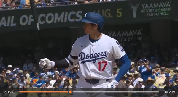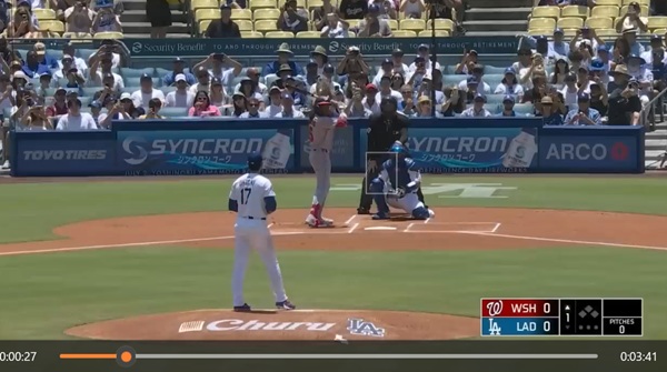 この日のドジャースタジアムには、かつてエンゼルスタジアムで大谷投手が登板する時に流れていた曲が鳴り響いた。