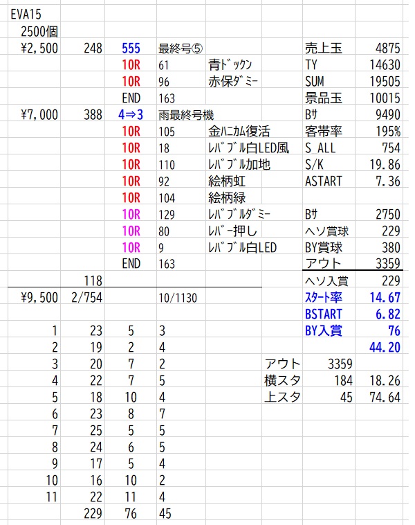 これも困ったもんだなあって思いつつも狙った台に居座り勝負開始。ヘソは6月、7月に打った時よりも小さ目。BYがあるから座ってるけどあまりにも横スタが悪くなると打てんくなると思う。しぶしぶ勝負を続けていたが150回転くらいであたた。槍が突き刺さり金枠の5。9BIGになって背景レイ。どないだ。てっきり初号機にいくんかと思うてたら弐号機でマステマもなし。およよ外れるんかって思ったら銀枠で没。大体9BIGになっとる時点で8×9の弐号機が当たるはずがない。当たるんなら初号機やろ。