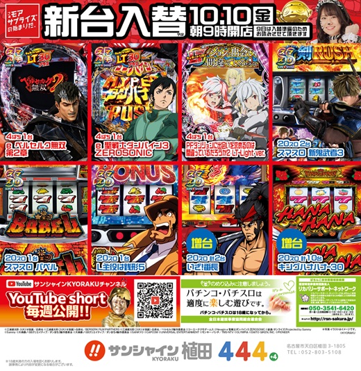 ☆★10月10日(金)新台入替朝9時開店予定★☆