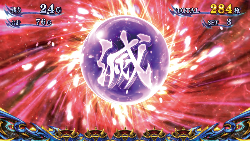 鬼斬チャージは7セット目に小役成立でAT濃厚となり、以後小役成立でATゲーム数を上乗せしていきます。そして、最終10セット目に小役成立なら鬼ガチチャンスを獲得します。