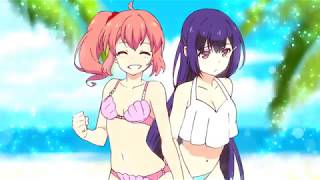映像内では、水着などの様々な衣装を着たキャラクター達が登場しています。