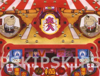 大当たり図柄は前頭一~前頭七、十両、金星、小結、大関、横綱の12種類。これらの内、軍配に赤く図柄が描かれている前頭三、前頭七、金星、小結、大関、横綱の3つ揃いで大当たりになったら確変突入となる。