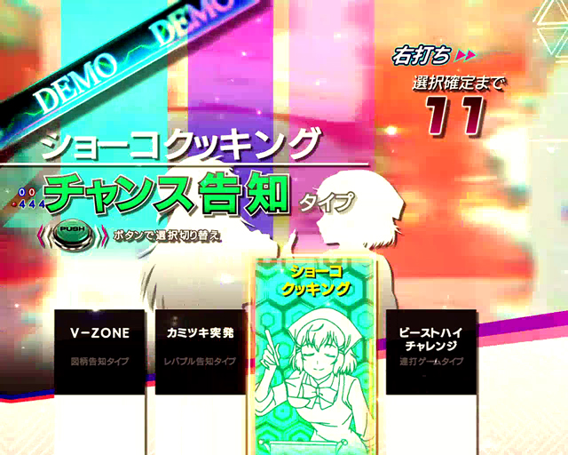 | 3R(実質3R)通常…50% 3R(実質3R)確変…25% 10R(実質10R)確変…25% |