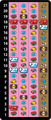 あるいは、左リール枠内に「白7に挟まれたスイカ」を狙い、枠内にスイカが停止したときのみ中リールにスイカをカバーしよう(右&4thリールは適当打ち)。
