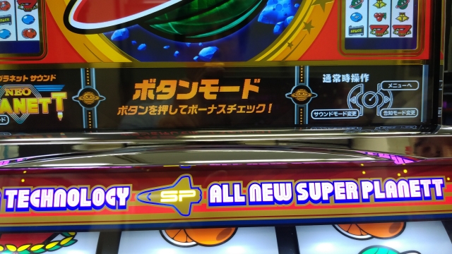 ボタンモードは、第3停止後中リール下のボタンを押せばボーナスの有無を確認可能(ボーナス成立なら上部パネルで告知)。