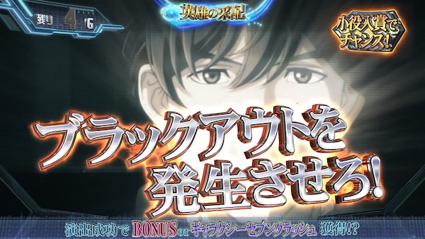 報酬は初当たりBONUS→OPENING BONUSと昇格し以後ギャラクシーセブンクラッシュをストック、期待度は約55%