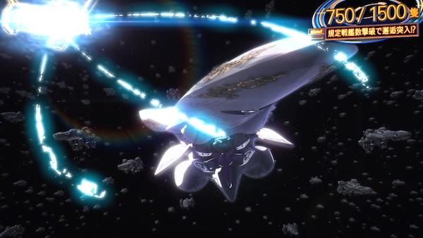 GALAXY BONUS中の払い出し枚数が敵艦隊撃破数とリンクし、索敵ゾーンで決定した敵艦隊撃破数に到達した場合は上位STへ。