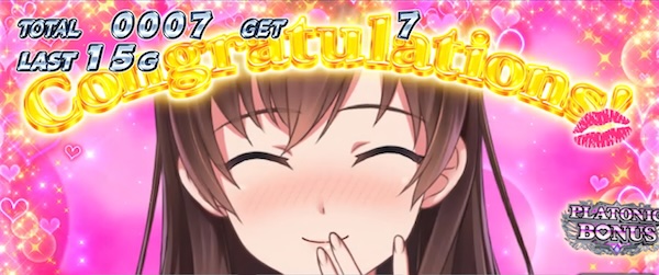 初当たりボーナスのメインとなるのがプラトニックボーナスで、そこでは1G連を抽選し1G連当選なら終了後の「絶対領域」も獲得となる。
